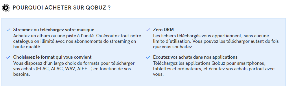 Qobuz propose à la fois un service d’abonnement, mais aussi l’achat d’albums numériques.